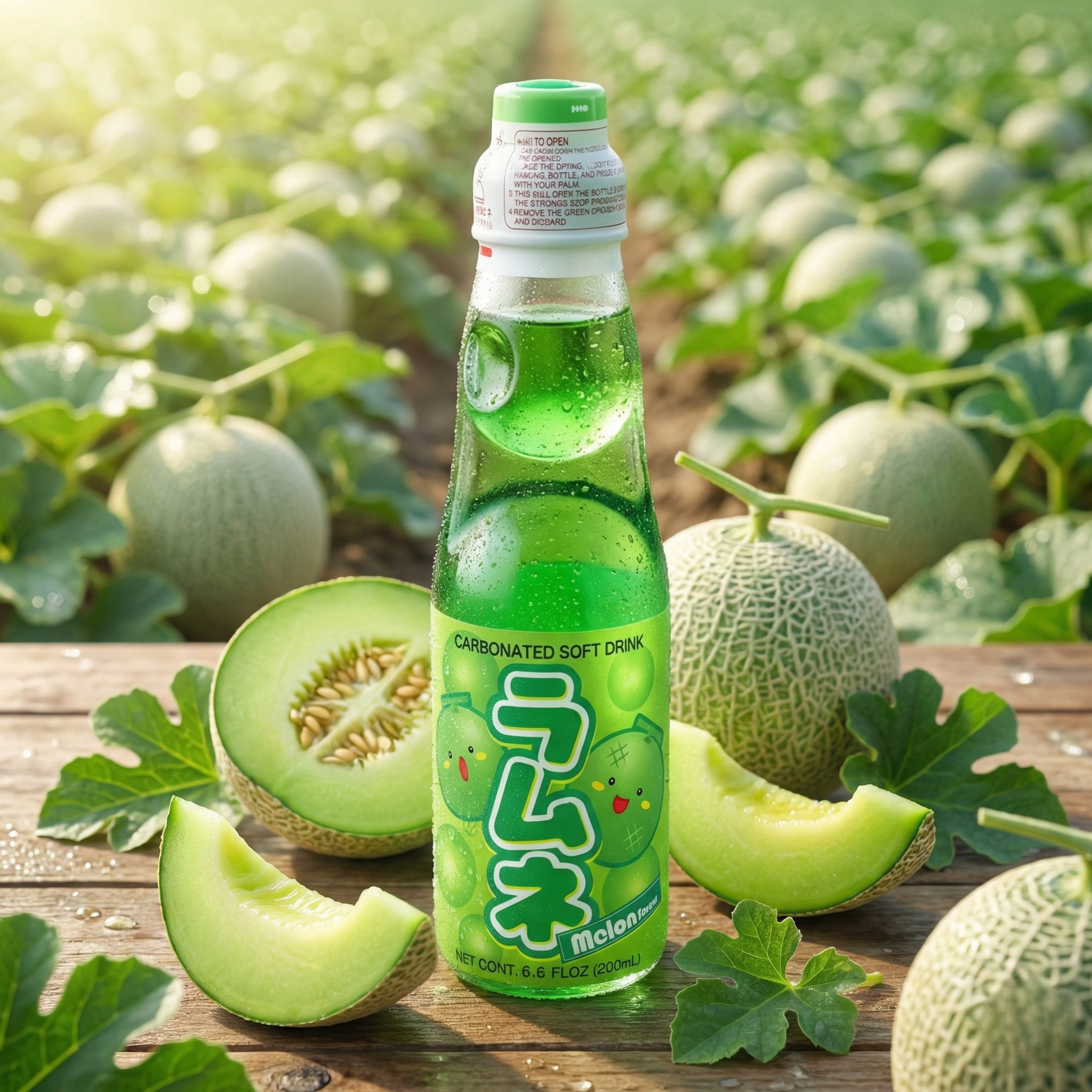 Ramune Soda Saveur Melon (Melon Flavor) - Boisson Gazeuse Japonaise en Bouteille de Verre
